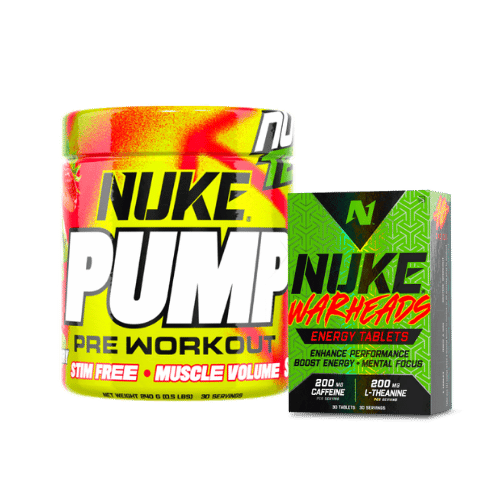 Take 1 NUKE WARHEAD tablet with lunch for a mid-day energy boost. Take 1 scoop of NUKE PUMP, drink 20 minutes before training.