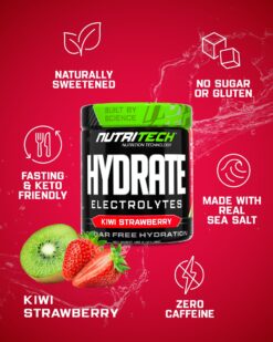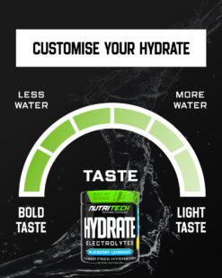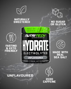 NUTRITECH Hydrate Electrolyte, your go-to electrolyte powder. Ensuring you stay properly hydrated doesn’t only involve drinking water; it also requires replenishing your body’s essential electrolytes. This is often overlooked, especially by those who are health-conscious and physically active.