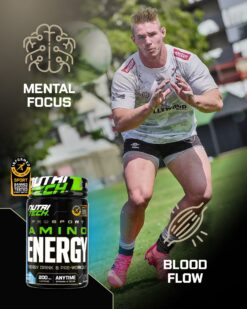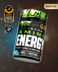 NUTRITECH AMINO ENERGY, your go-to performance booster. Packed with 100mg caffeine per scoop and amino acids, providing the fuel you need, on and off the pitch. Boost energy, performance and focus anytime of the day.Increase muscle recovery and reduce muscle breakdown. Low calorie formula with zero sugar.