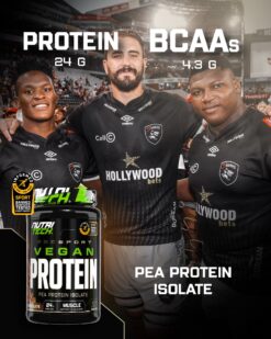 NUTRITECH PROSPORT VEGAN PROTEIN, your go-to muscle building Vegan Protein certified by Informed Sports. Packed with 24g of Protein per serving, providing the plant based protein fuel you need, on and off the pitch. Build and maintain lean muscle mass with 24g protein. Recover post-workout with 4.3g of naturally occurring BCAAs. Zero gluten, dairy, lactose or soy – 100% pea protein.