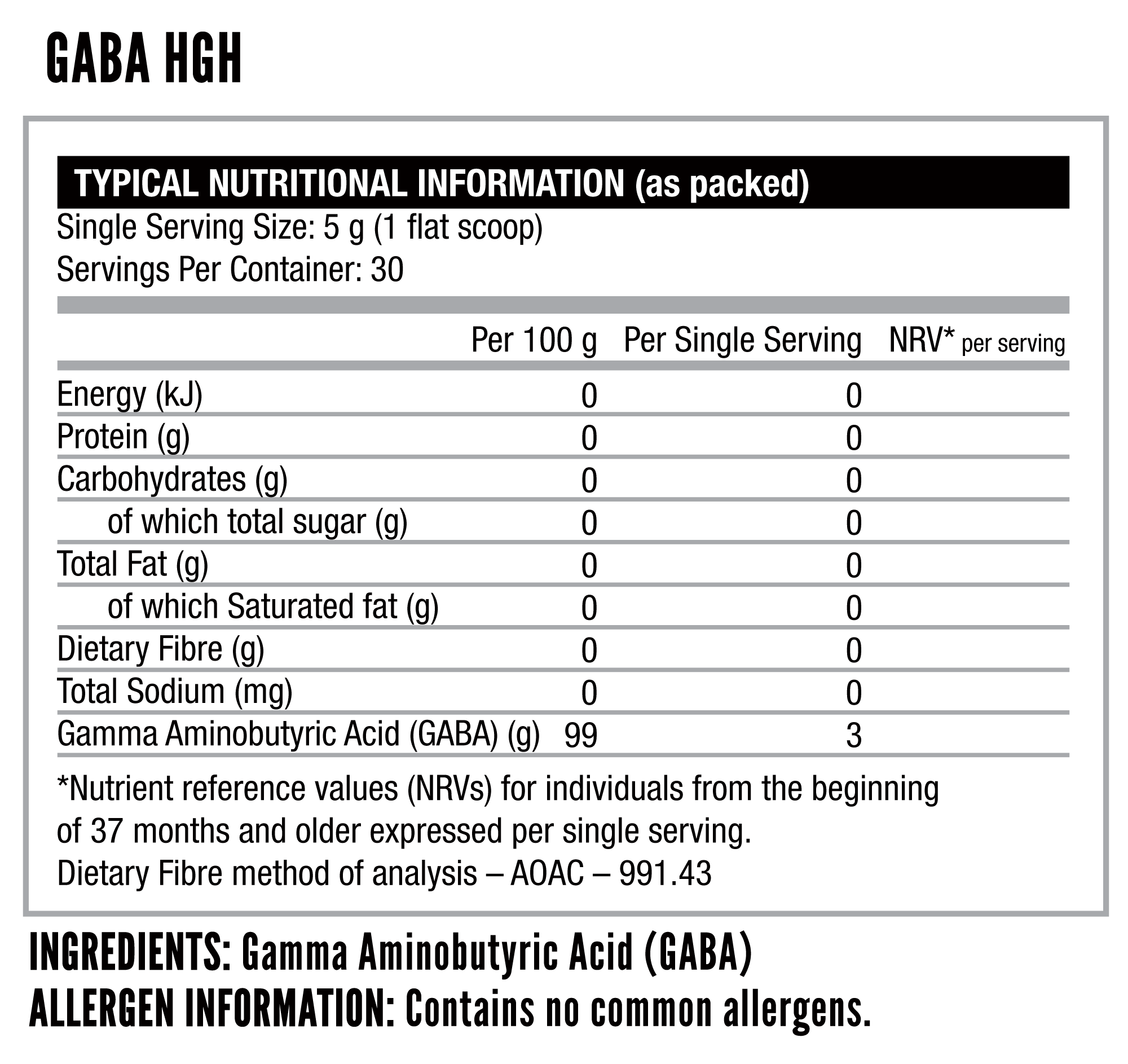 NUTRITECH GABA HGH has been specifically designed to help stimulate the production of the Human Growth Hormone (HGH). Gamma-AminoButyric Acid (GABA) is a powerful Amino Acid produced in the hypothalamus region of the brain which regulates instinctive functions, such as sleep cycles, body temperature and the activities of the pituitary gland. The pituitary gland affects all hormonal functions of the body, including the production and secretion of HGH.
