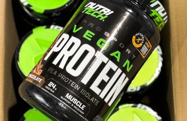 NUTRITECH PROSPORT VEGAN PROTEIN, your go-to muscle building Vegan Protein certified by Informed Sports. Packed with 24g of Protein per serving, providing the plant based protein fuel you need, on and off the pitch. Build and maintain lean muscle mass with 24g protein. Recover post-workout with 4.3g of naturally occurring BCAAs. Zero gluten, dairy, lactose or soy – 100% pea protein.